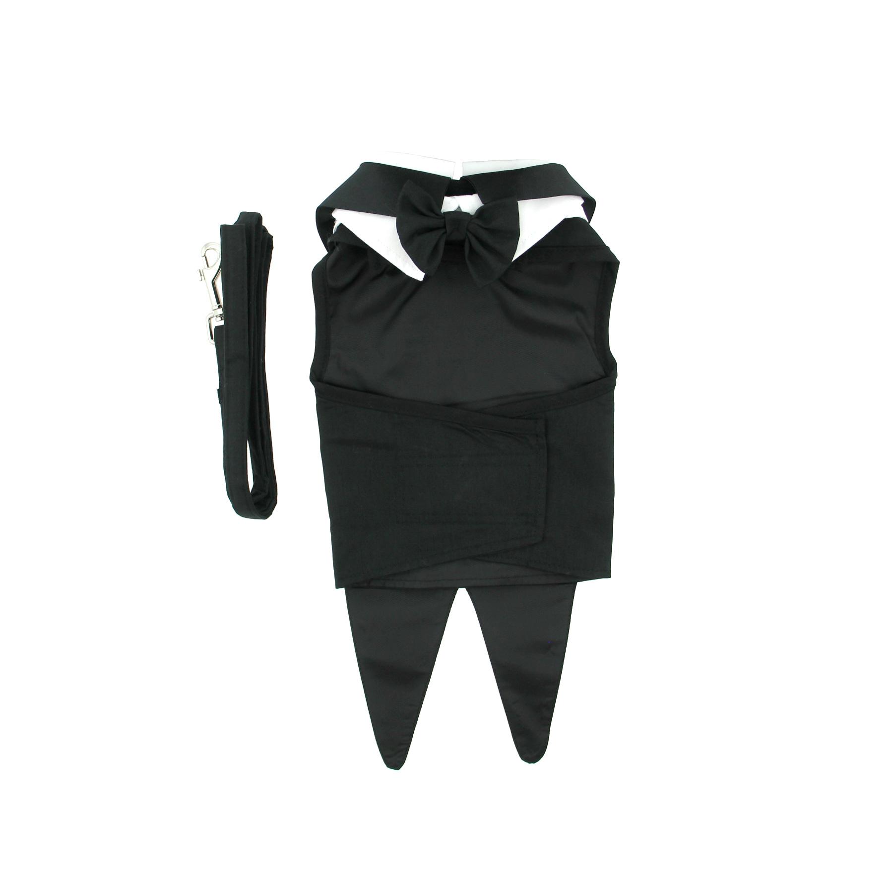 Black Dog Harness Tuxedo with Tails, Bow Tie, and Cotton Collar