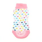 Clip dog’s claws before wearing. Dogs may prance when first wearing the socks. It helps to distract them with a treat or their favorite toy until they get used to them.