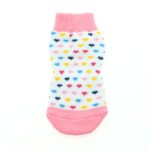 Our socks are made with 100% cotton and available in 4 great prints; Argyle, Camo, Pineapple, and Hearts. They are made of a very soft cotton and feature an anti-slip dog sole.