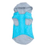 Our quilted Weekender Sweatshirt Hoodies are great for pups on the go! The outer shell is a quilted puffer style while the inner lining is cozy, jersey material. The hood is also made of jersey material and can easily zip off when not needed. Reflective stripping makes your pup noticeable in low light while the two-inch fastener down the chest provides an adjustable closure. Zippered pockets on the back provide a cute finishing detail, as well as an easy place to stash a few treats or a waste bag.